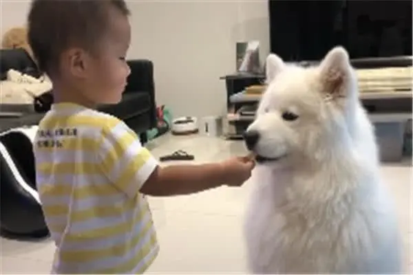 有了狗狗做陪伴,孩子会慢慢的学习如何相处,恰当的跟别人分享自己的一切,正是培养孩子独立人格很重要的一部。孩子做事要是太蛮横,以后到社会上工作肯定会吃亏的。萨摩耶狗狗吃到了主人的食物,体会到主人的爱心,狗狗立马开心的笑了起来。