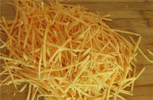 【制作过程】第一步:首先把红薯清洗干净,外皮削去,将其擦成丝,接着装到一个盆中,端上蒸锅大火蒸熟。