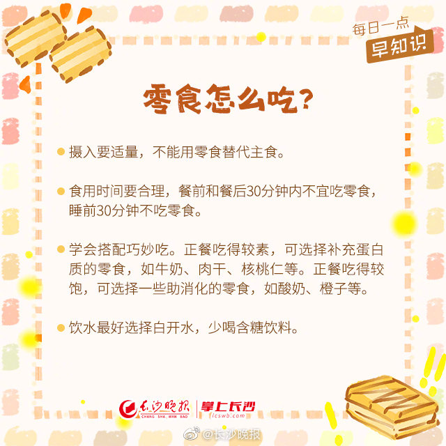 【叮咚!您的#新年零食清单# 请查收】新年的钟声越来越近了,大家新年的零食都准备好了吗?大朋友、小朋友们是不是准备借此机会大快朵颐?但是新年的零食要怎么挑、怎么吃你清楚吗?我们整理了一份零食清单,欢迎大家对号入座,健康过年!#每日一点早知识# #早安长沙# #长沙[地点]#