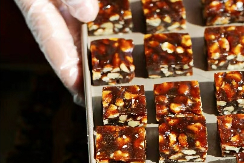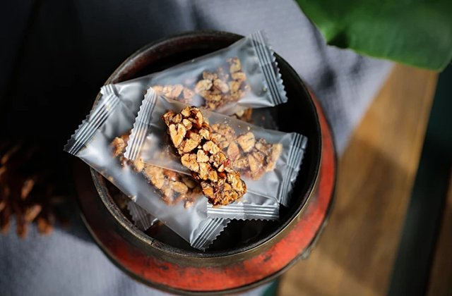 野生山核桃脆选用山核桃仁、手工红糖、麦芽糖混合调制