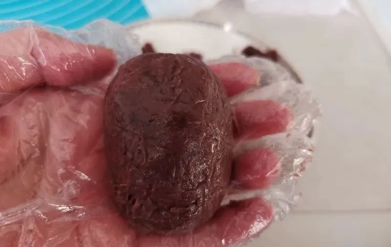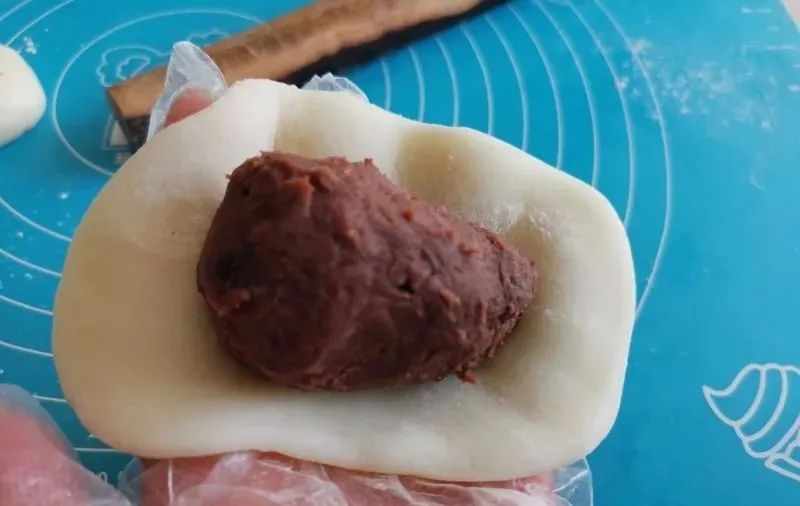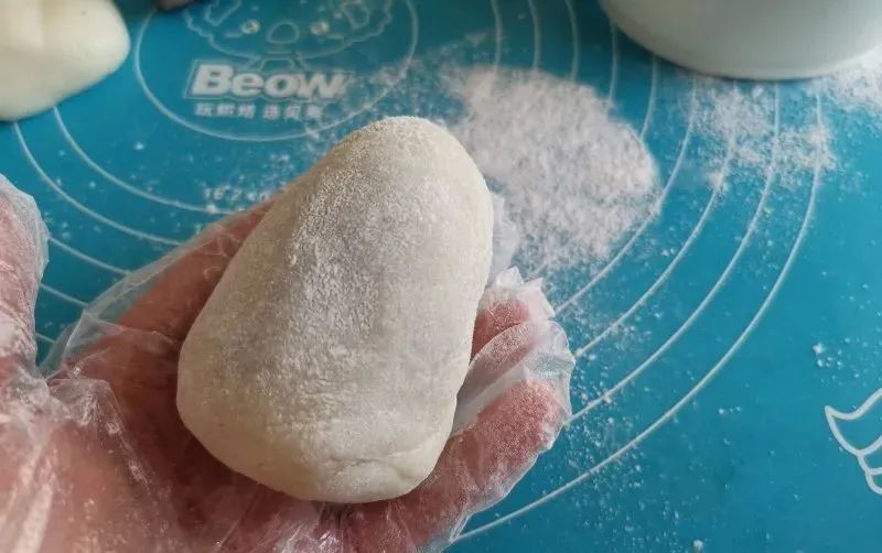11. 糯米皮也分均等份,撒上熟糯米粉,擀成薄片,因为草莓的大小不同,不能给出准确数据,预计能包裹住豆沙草莓就行。