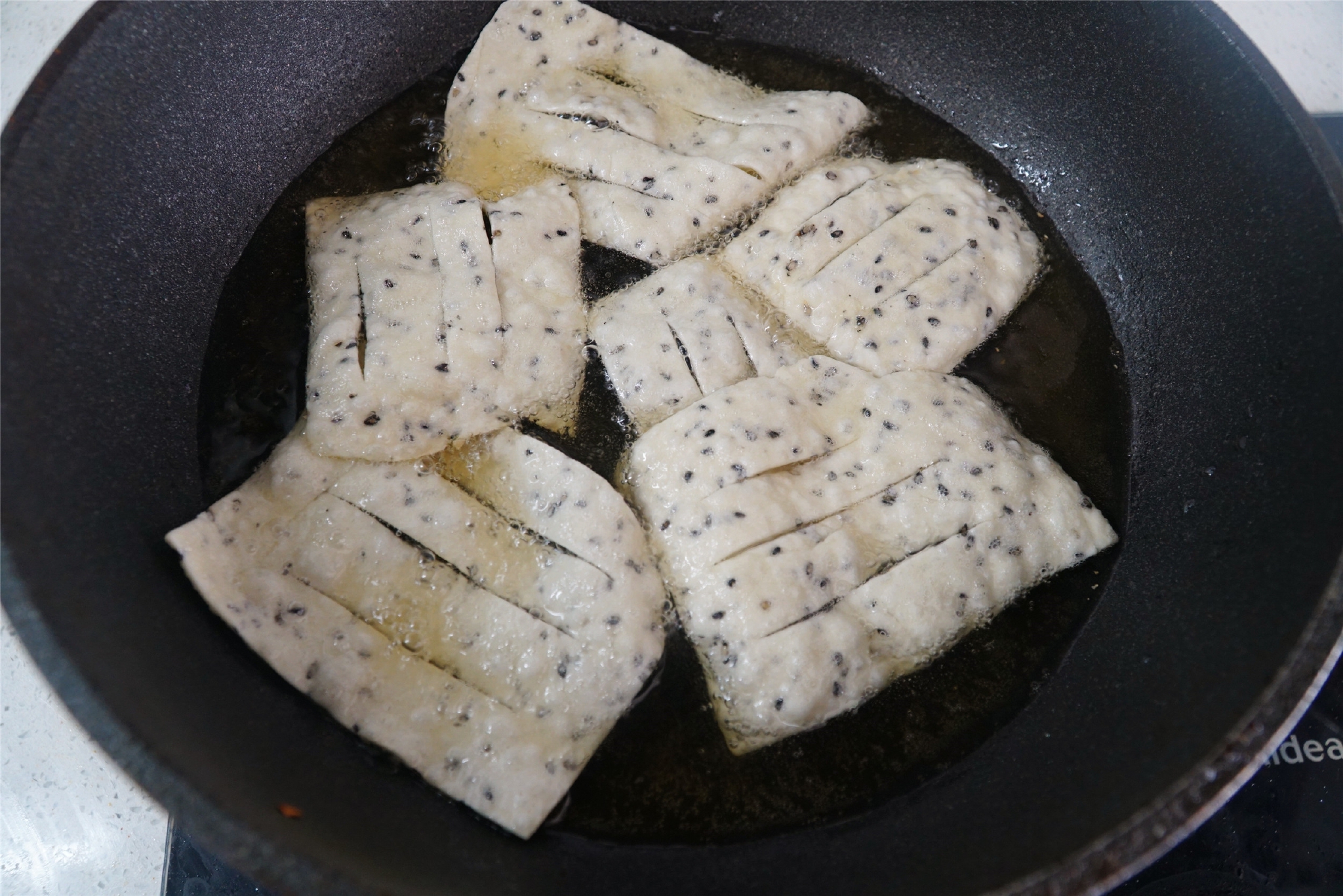 3、不知道怎么判断油热没热,可以先丢一小块面放进去,如果马上浮了起来,就可以下锅炸了。
