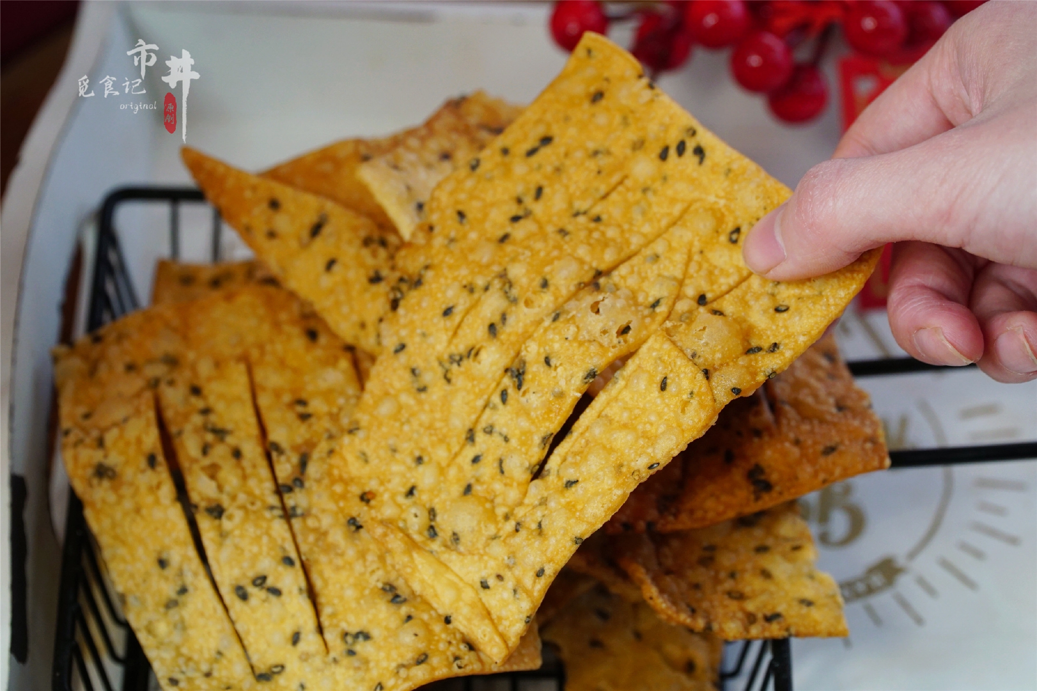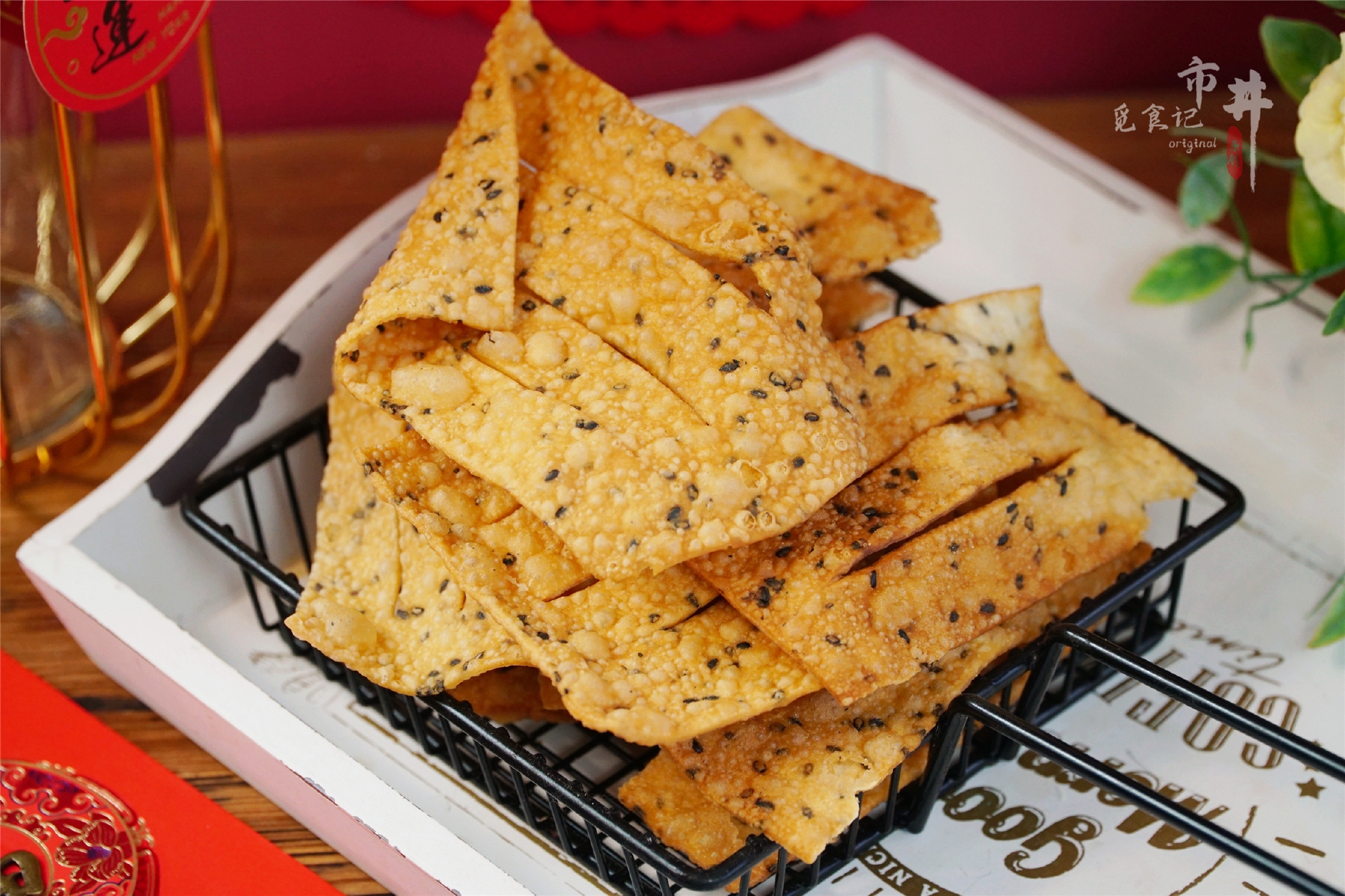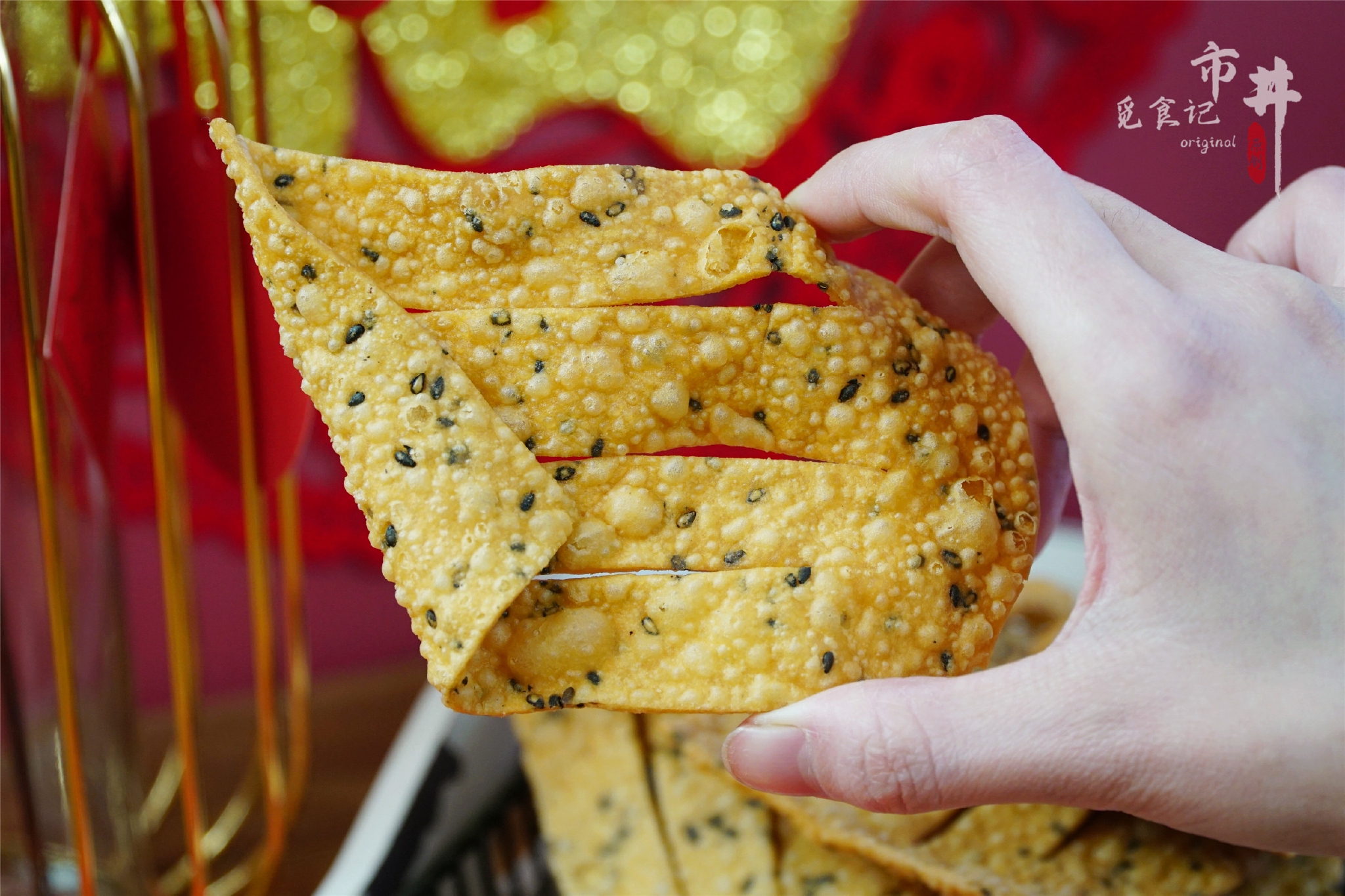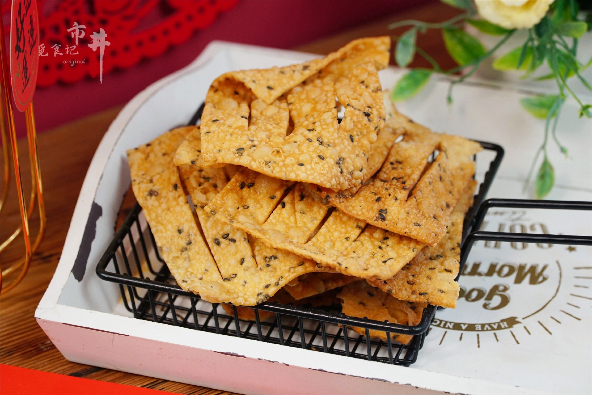 麻叶金灿灿的色泽,一口咬下去,嘎嘣脆,芝麻的香气和油香味瞬间在口腔中漫延,味道和口感有点类似于煎饼果子中的薄脆,也有些像新疆的撒子,不过它轻薄的外形像一片叶子,透着星星点点的芝麻,因而称为“炸麻叶”,在有些地方也叫“炸焦叶”。