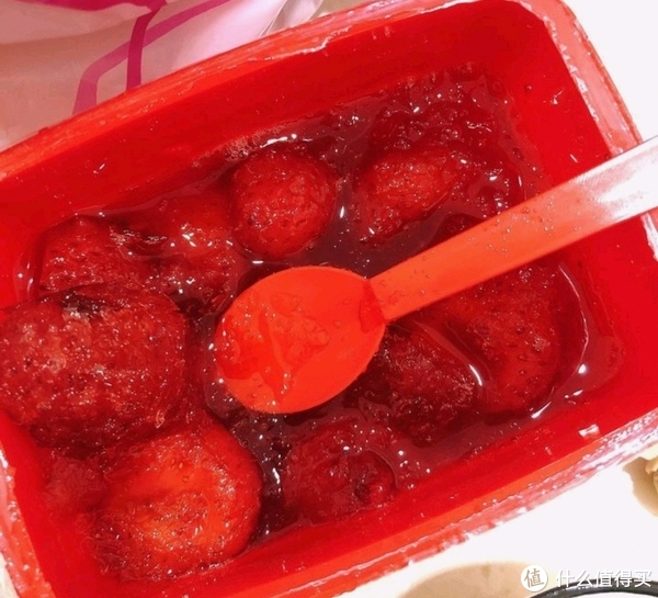 像这个草莓罐头就是顺丰邮寄过来的,到手还是冰凉的,放在冰箱里面冰,吃完饭后来一盒,很解腻呀!