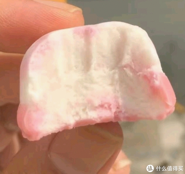 上面是软绵的草莓味棉花糖,入口软绵绵的就像是在吃松软的蛋糕一样,下面是草莓巧克力。