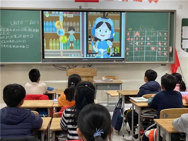 正在进行的是上海松江区方塔小学儿童科学零食主题科普教育课程——《哪种零食爸妈能同意》。整套课程是由“童食健康”儿童科学零食项目打造,包含了教案、教学课件在内的专家视频科普课,助力学校教师为学生开展营养健康科普教育。2021年,这样的科普课程已经陆续在40所小学展开。