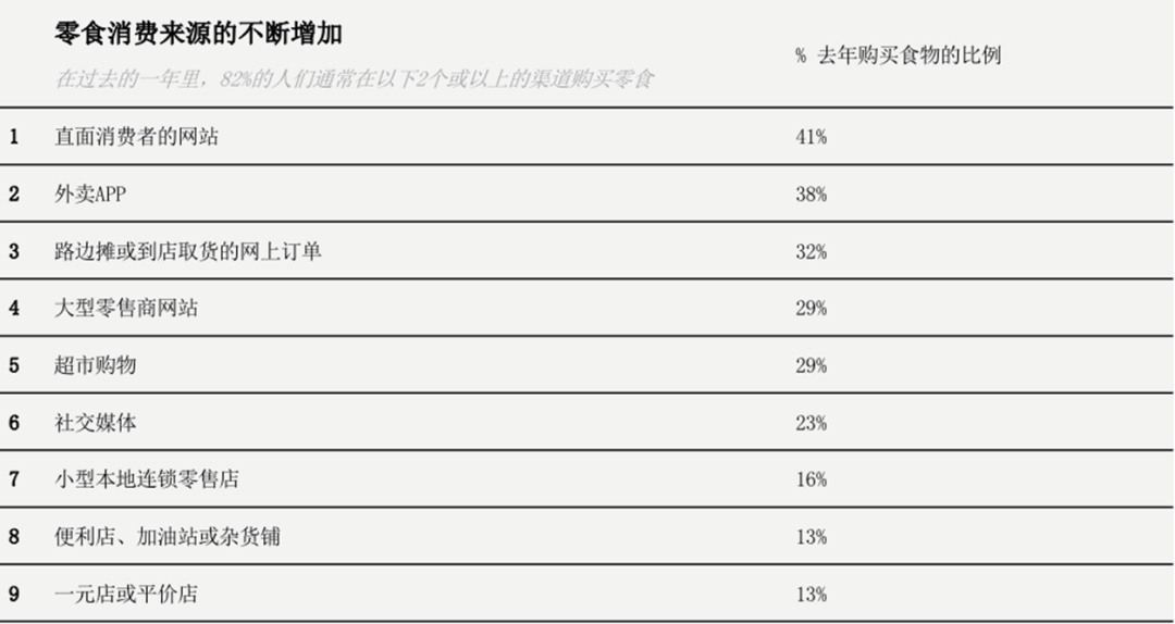 此外,中国消费者购入零食的方式和需求也在发生深刻变化,零食消费渠道多样化,社交媒体对购物决策的影响也在持续扩大。