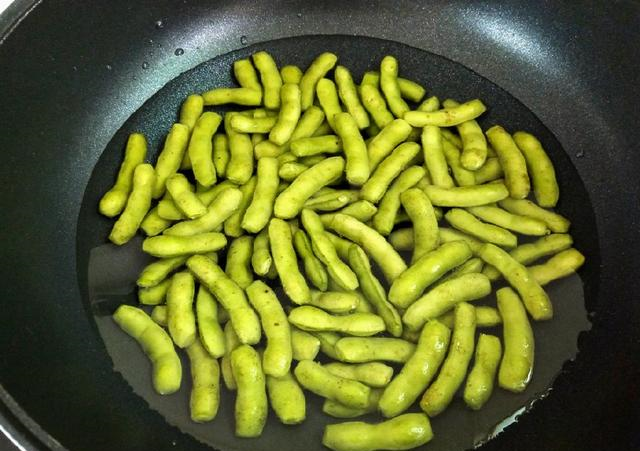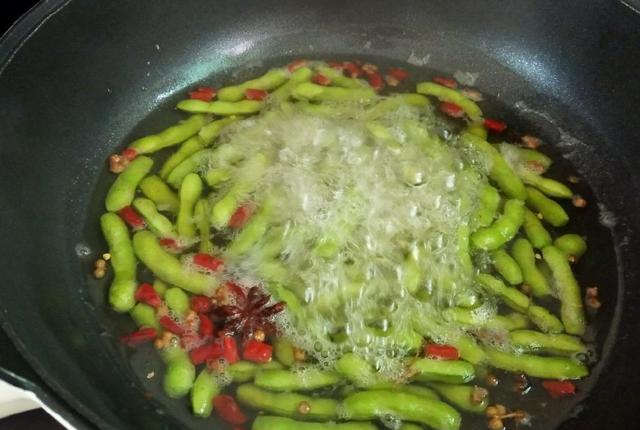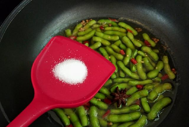 因为毛豆的话都是比较嫩的,非常的容易熟,这个时候就可以关火了,然后再加入盐,让毛豆在水中浸泡一会儿,让其入味。