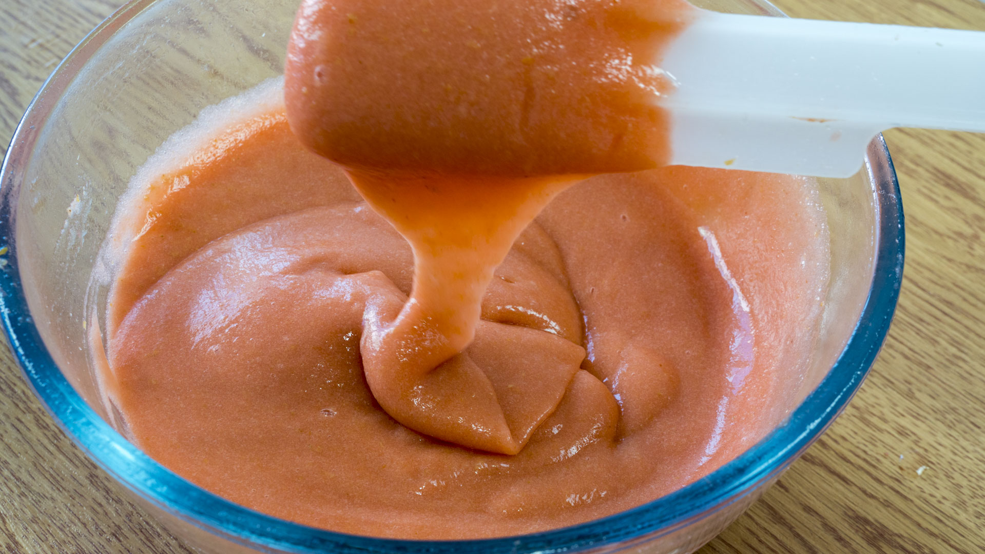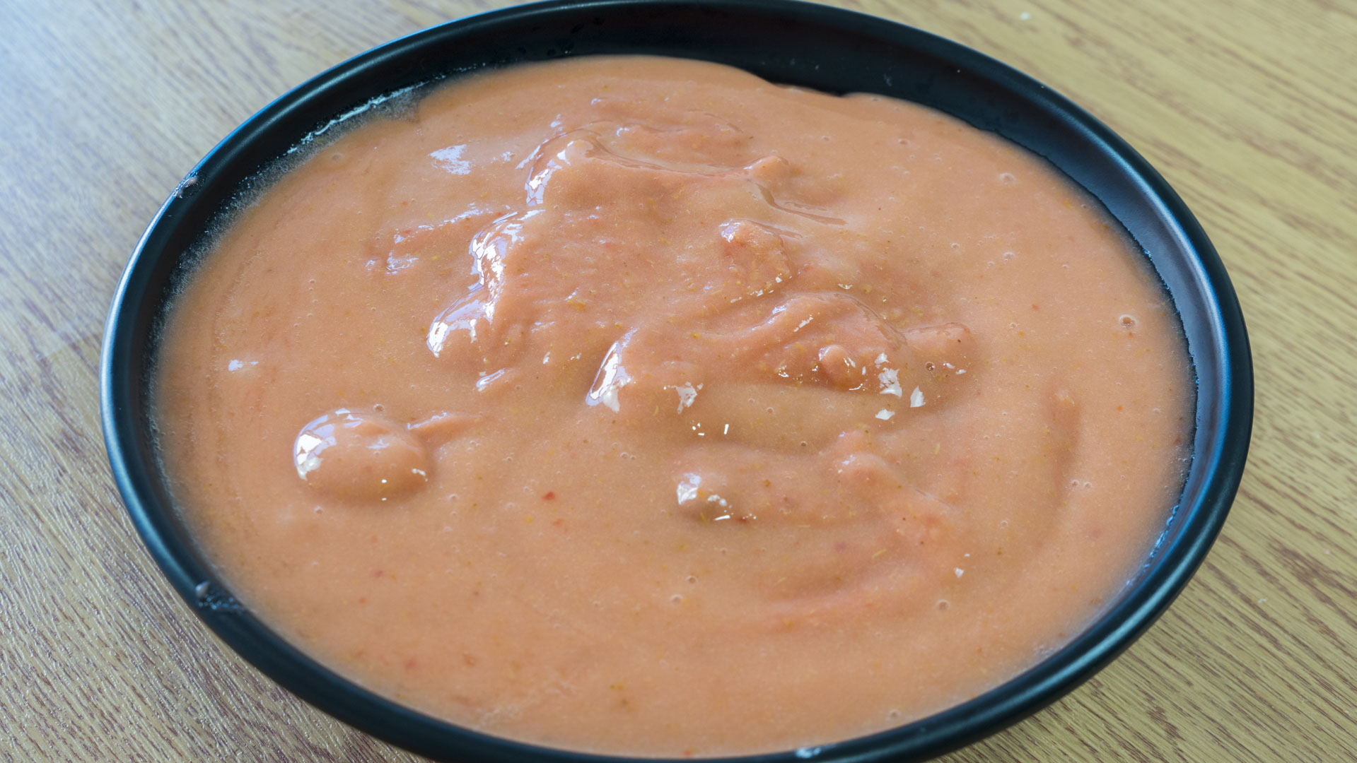 6、接着我们用细细的滤网过筛一遍,这样才能保证口感绝对的细腻,不好过筛的可以稍微的再加点煮山楂的水,一定不要加太多,过滤好的山楂泥的确是超级的细腻顺滑;