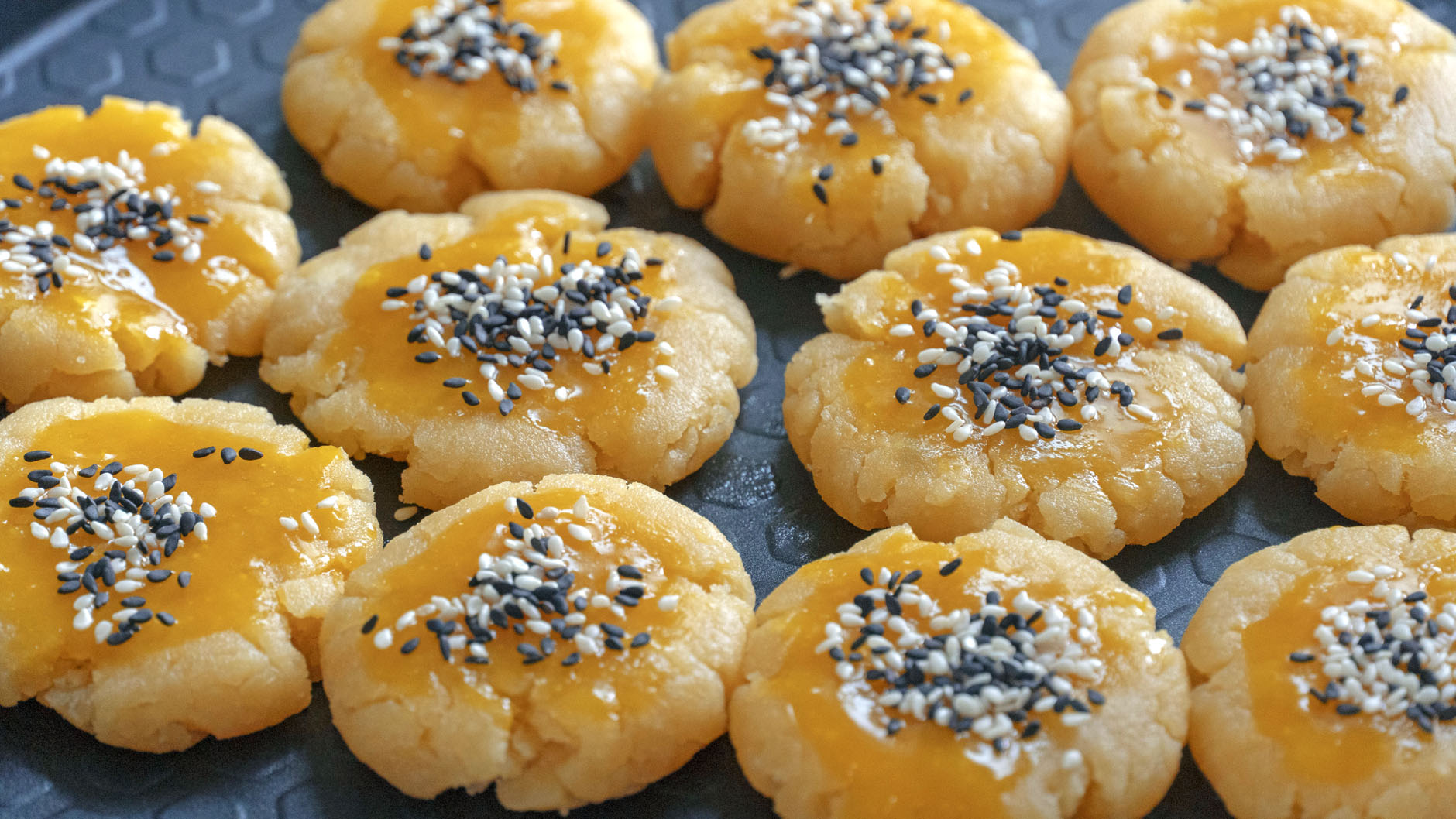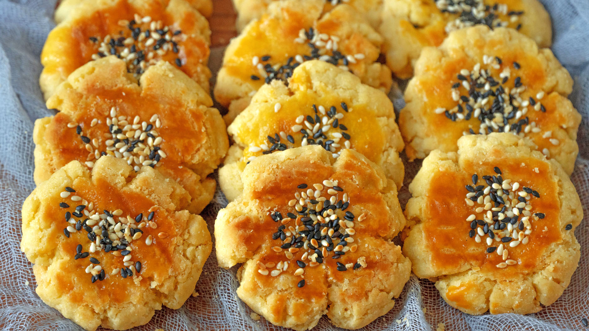 外皮都是脆脆的,轻轻一碰就掉了,一捏就成了渣,掰开看一下,超级香甜诱人的红糖馅儿哦!