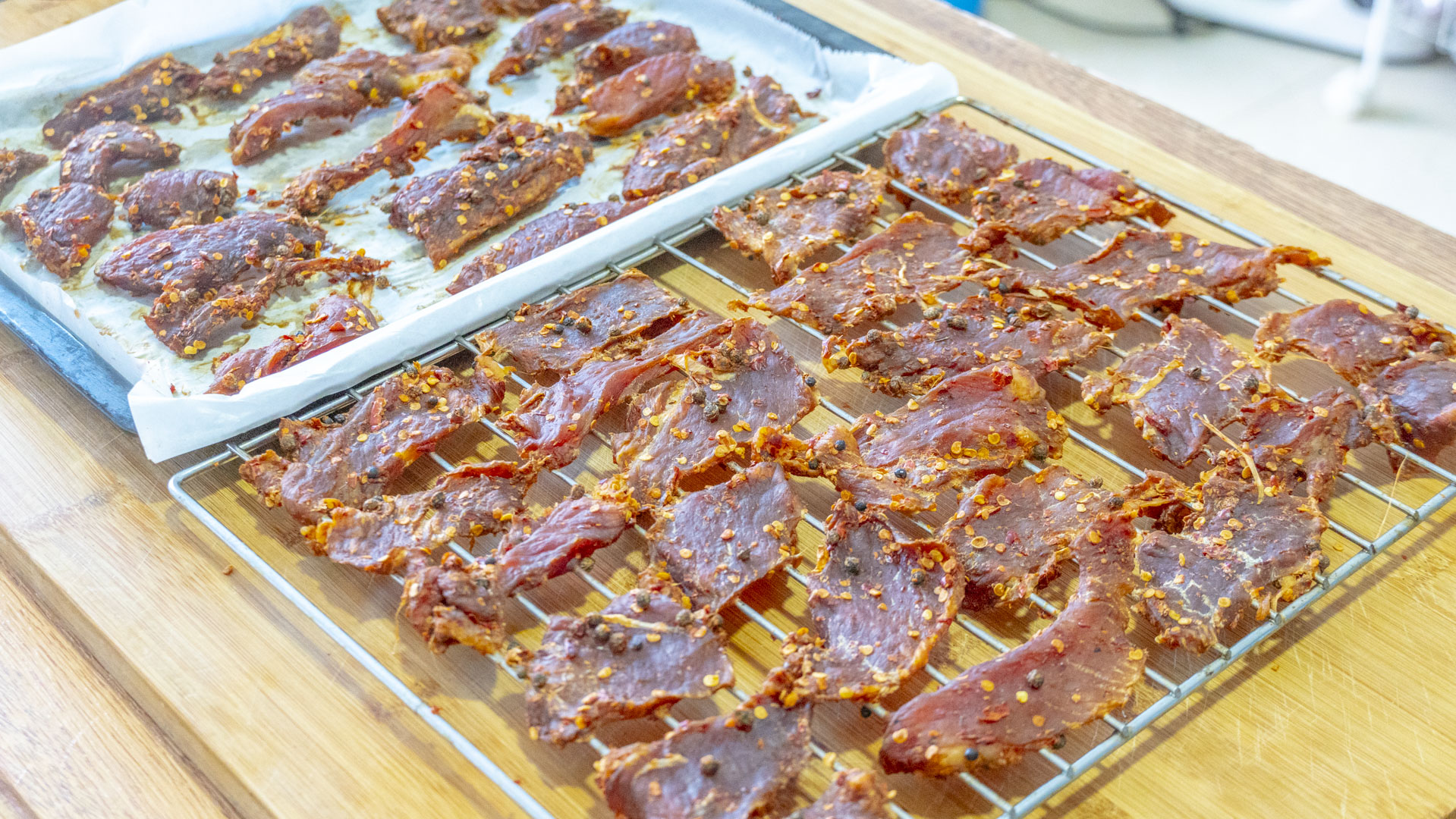 口感上微麻微辣,粗辣椒面和整粒的花椒,会让风干肉的口感更好,而且咸度也是刚刚好。同时吃起来非常的有嚼劲,和牛肉干一样的好吃,撕开也是可以拉丝的,吃不完的可以用袋子装起来,然后抽真空封口,过年的时候用来当小零食吃特别香。