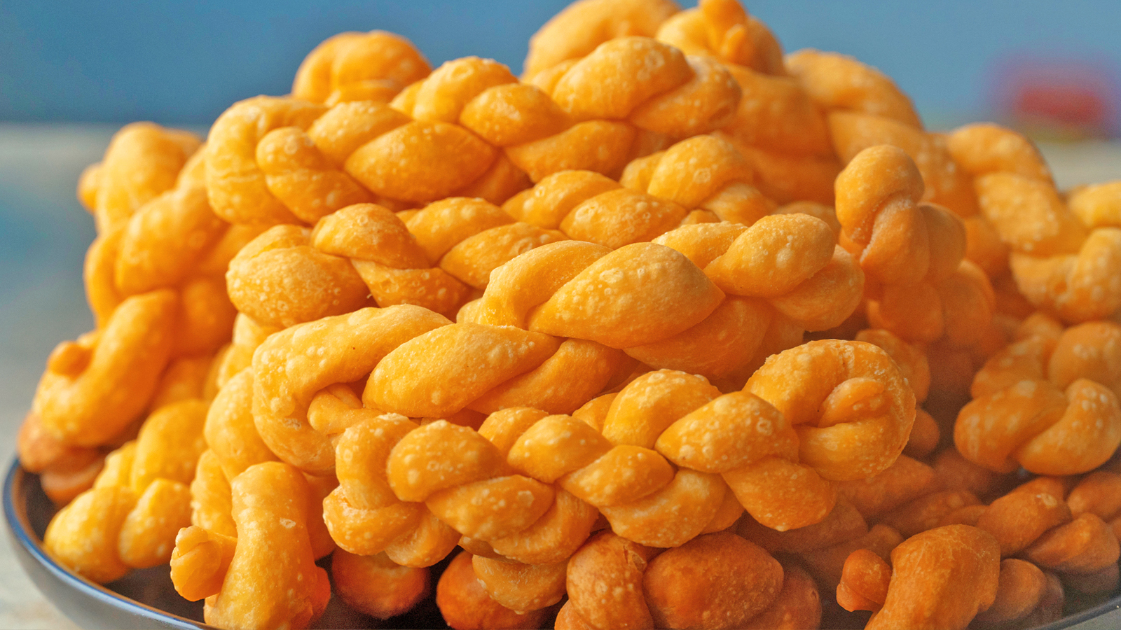 5、这个麻花是不是特别简单呢?用鸡蛋和面炸出来的麻花是不会硬的,非常酥脆。