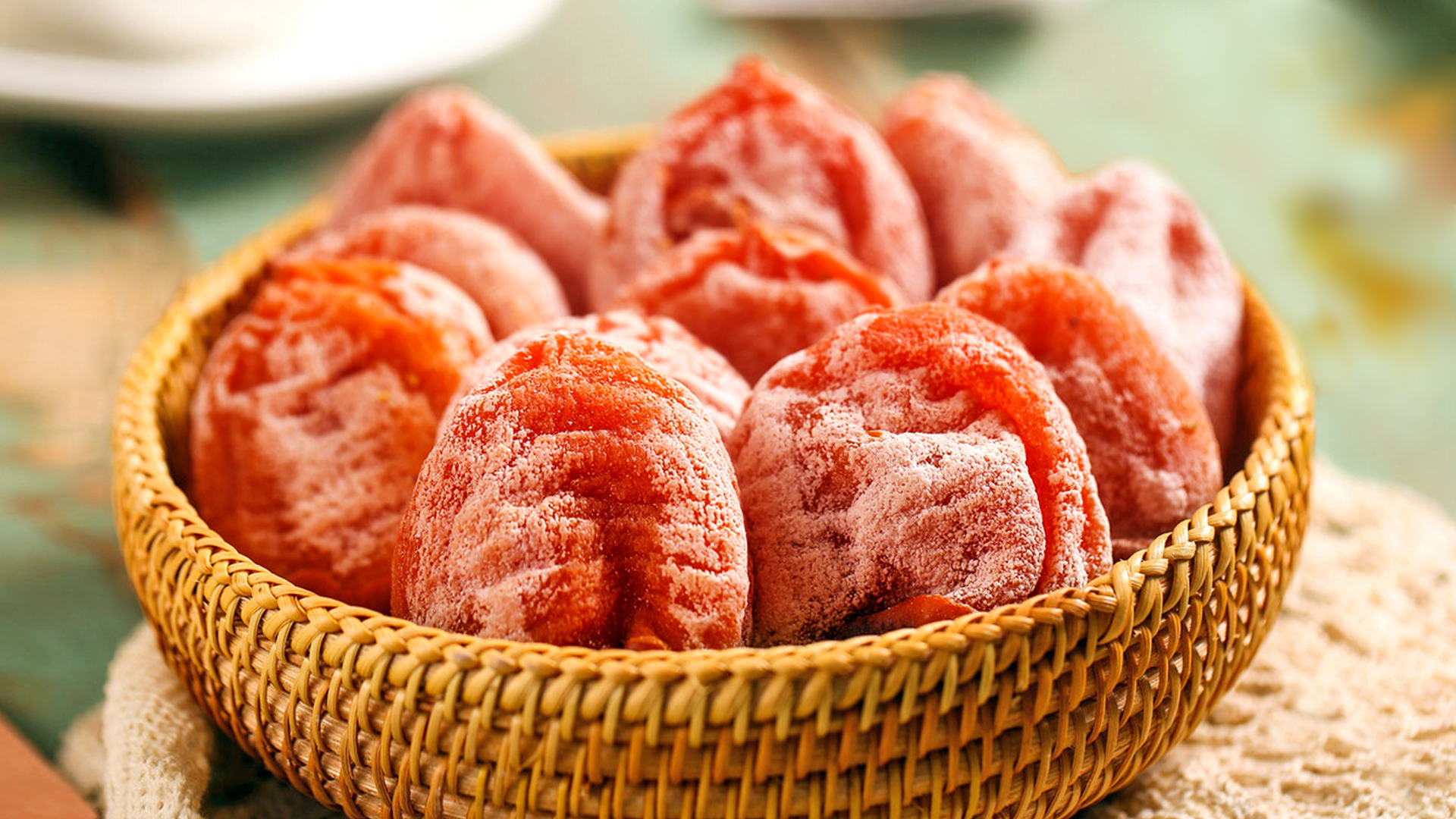 如果像柿饼出霜,就把柿子皮和柿子放一起,然后捂严实,直到出霜就可以了。