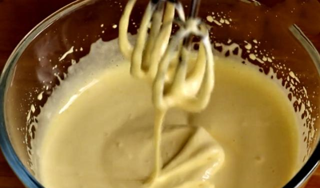小饼干第一步:在碗中打上鸡蛋4个,大约150克,再加上白糖80克,用打蛋器打发,大约打发3分钟,打发到颜色发白,再加上低筋面粉120克翻拌均匀。