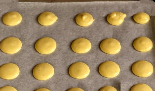 小饼干第二步:把鸡蛋糊倒在裱花袋中,在烤盘中铺上一层油纸,在袋尖剪一个小孔,然后把鸡蛋糊挤在烤盘中,大小根据个人的爱好决定。
