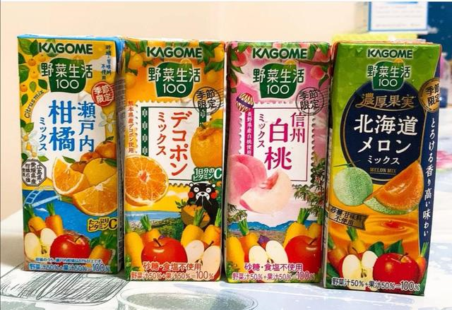03日本KAGOME果蔬汁这张图上的四款属于季节限定,都是水果口味。最经典的当然还是蔬菜汁,不过论味道的话水果口味比较让人容易接受,毕竟不爱吃蔬菜星人实在太多太多了。所以这款饮品其实亦算得上是“功能饮料”,50%果汁+50%蔬菜汁,味道天然度比较高,不算很浓稠,个人觉得加几块冰喝更好。这款尤其适合懒人,蔬菜或水果摄取量较少的两天里来一瓶补充补充膳食纤维和维生素。奈斯~