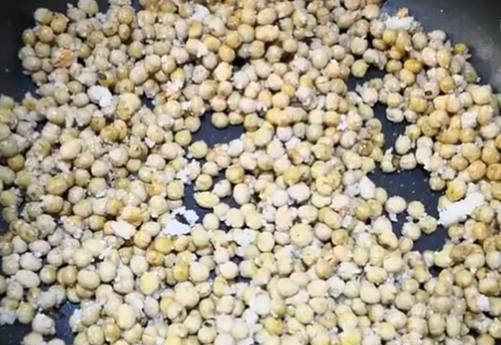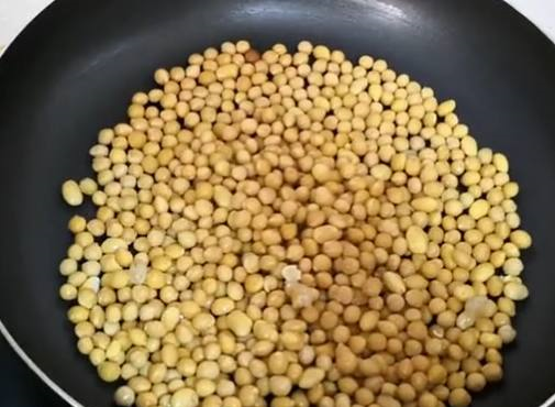 泡好以后,捞出,沥水,锅烧热,把黄豆放进锅里炒香.