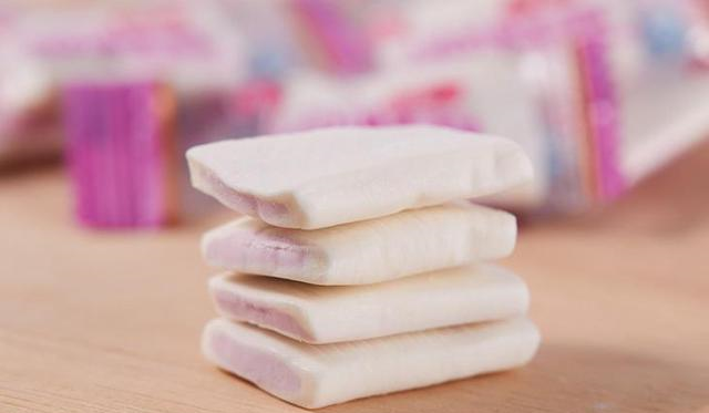 8、香芋味的牛奶软糖这种糖吃起来香香软软的,也不会粘牙,一整片可以撕开一个接一个吃,好吃到完全停不下来,现在的牛奶糖很难有这么直观的香味了。