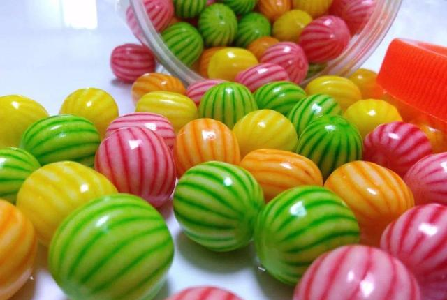 2、西瓜泡泡糖因外表酷似西瓜,这种红绿白条纹、能吹泡泡的糖果,在当时可以说很时髦了。记得学生时代一毛钱两颗,买回来后手心还被沾了各种颜色,我一次一般会买两颗,还真是“撩人”的绝佳零食呢。