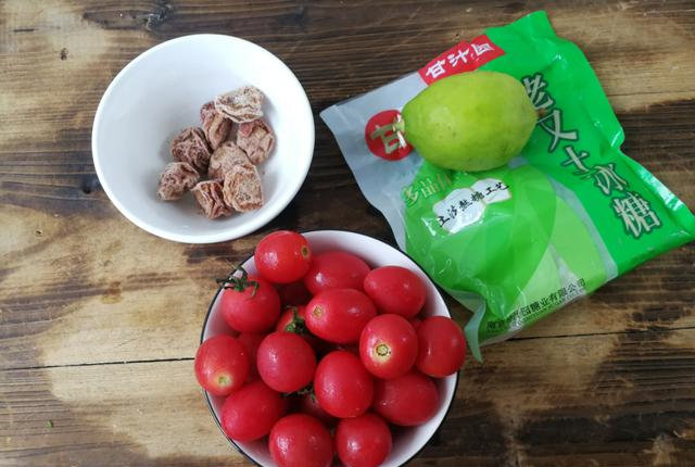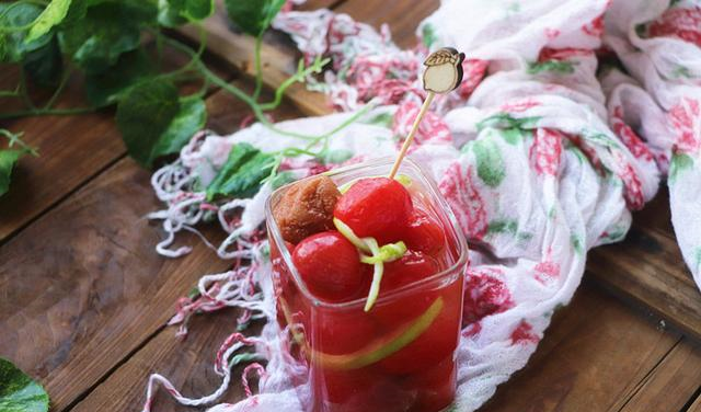 冰糖梅子圣女果主材料:圣女果 120克,话梅 30克,柠檬 3片调味料:冰糖 35克