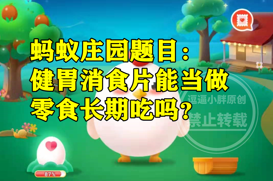 蚂蚁庄园题目:健胃消食片能不能当作零食