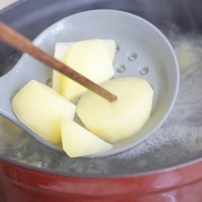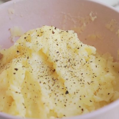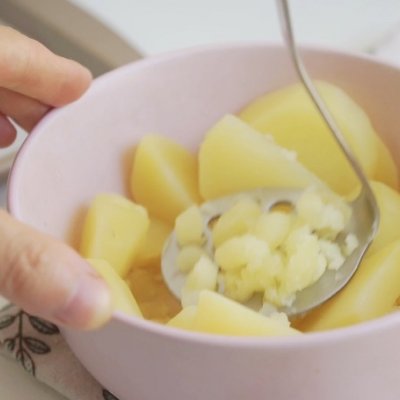 6、把煮好的土豆年压成泥