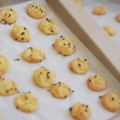 11、做成小豆子的形状平铺在烤盘内